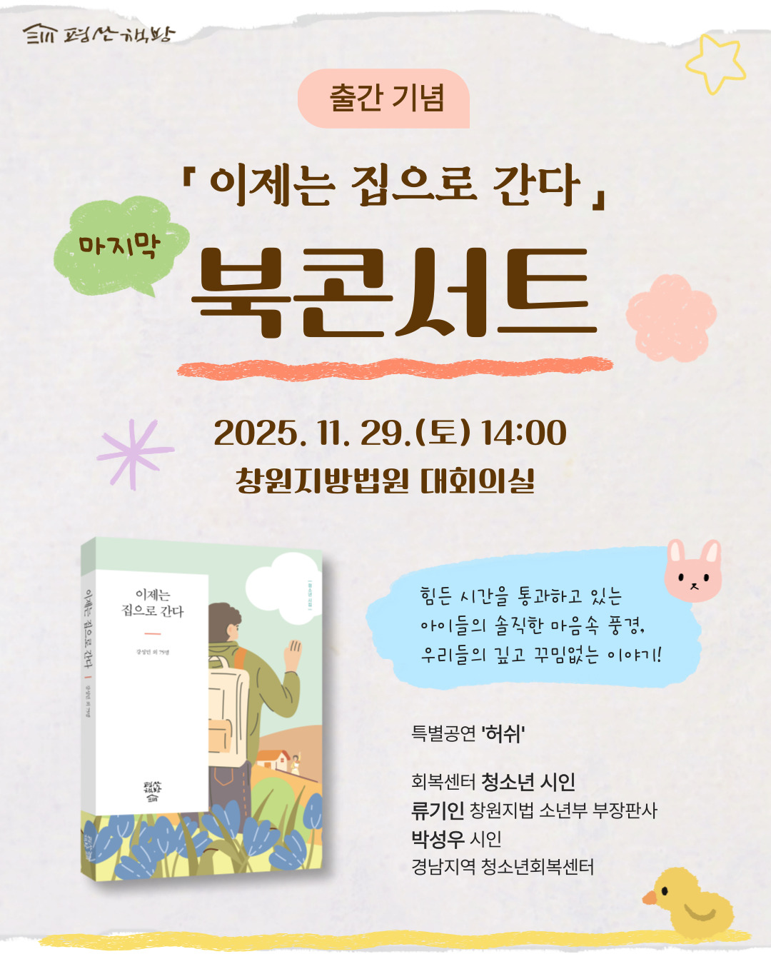 청소년 시집 <이제는 집으로 간다> 출간 기념 북콘서트 참여 안내